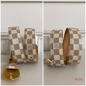 Authentic Louis Vuitton Damier Azur Canvas Leather Voyage Belt Size 85/34 M9837- UNISEX