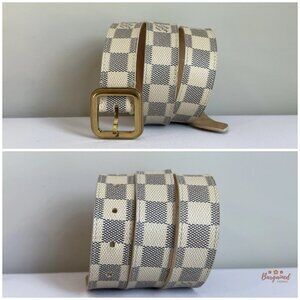 Authentic Louis Vuitton Damier Azur Leather Slim Gold Buckle Belt 85/34