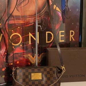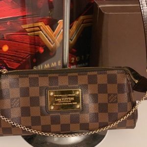 This is a preowned Authentic LV EVA from my personal collection. No FAKES HERE!. Comes in original box and dust bag. Looking only to trade for high end designer bags only. The brass on the chain has faded a bit. Other than that this purse is still quite beautiful.