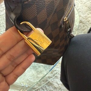 • Style: Louis Vuitton Damier Ebene Tote (structured zip-top style with padlock)
