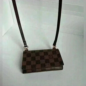 This is a vintage Louis Vuitton wallet on an unattached unbranded strap. See signs on wear