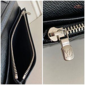 Authentic Louis Vuitton Damier Graphite Coated Canvas Leather Brazza Wallet 2014