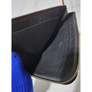 This authentic Louis Vuitton Damier Graphite Pochette Jour PM Zip Around Portfolio Clutch is in it’s good pre-owned condition. The exterior is clean and beautiful. Interior is clean. Silver hardware.