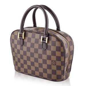 The Louis Vuitton Sarria Mini in Damier Ebene canvas is a charming, compact handbag that effortlessly blends style and practicality. Its structured silhouette and refined details make it a perfect choice for day-to-night versatility.