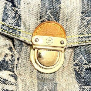 Authentic Louis Vuitton Denim Mini Pleaty Vintage Pouch Pochette Bag Monogram