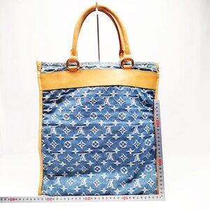 Authentic Louis Vuitton Flat Shopper Blue Monogram Denim Tote Bag mn1293-121225