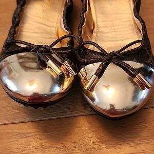 Authentic Louis Vuitton Flirty Ballerina Flats Size 36. Monogram Canvas, patent Toes, gold hardware, bottoms are clean, comes with dustbag.