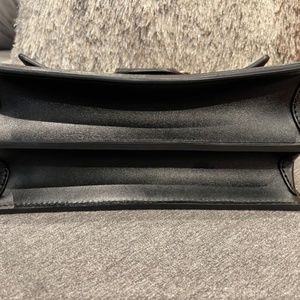 Interior - 2 open compartments and a zipper compartment in the middle, an open pocket at the rear open compartment. It is fully lined with the black microfiber lining.