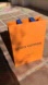 Elegant Louis Vuitton gift bag in tangerine with blue handle. Measures 14x 10x 4