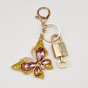 Authentic Louis Vuitton Gold Lock & Key with Unbranded Butterfly Charm 090925