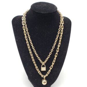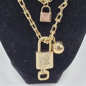 Authentic Louis Vuitton Gold Lock W/ Unbranded Stainless Steel Double Chain