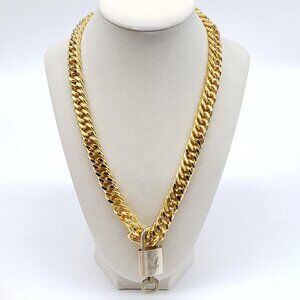 Authentic Louis Vuitton Gold Lock w/ Unbranded 18k cuban Gold Plated Chain