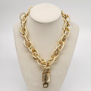 Authentic Louis Vuitton Gold Padlock w/ Unbranded Fashion Geometry Necklace