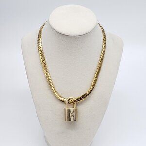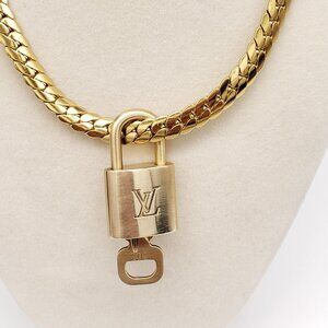Authentic Louis Vuitton Gold Padlock w/ Unbranded Fashion Stainless Steel Chain