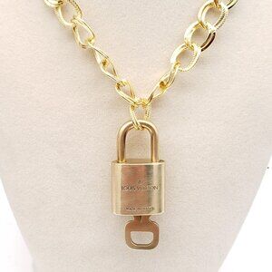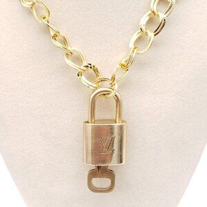 Authentic Louis Vuitton Gold Padlock w/ Unbranded Fashion Stainless Steel Chain