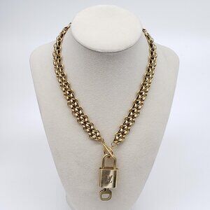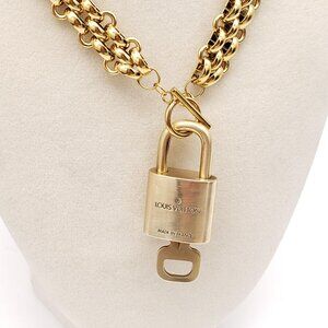 Authentic Louis Vuitton Gold Padlock w/ Unbranded Fashion Stainless Steel Chain