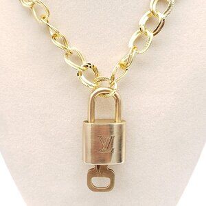 Authentic Louis Vuitton Gold Padlock w/ Unbranded Fashion Stainless Steel Chain