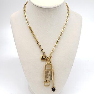 Authentic Louis Vuitton Gold Padlock with Unbranded Stainless Steel Chain