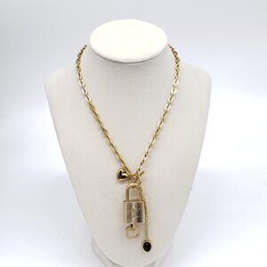 Authentic Louis Vuitton Gold Padlock with Unbranded Stainless Steel Chain
