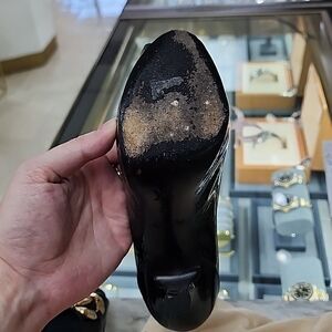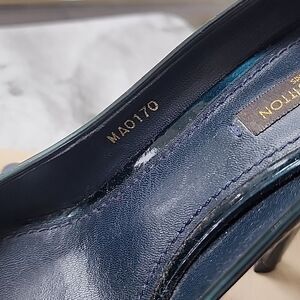 Authentic Louis Vuitton Green Vernis & Gold Peep Toe Pumps Heels shoes SZ 36