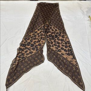 Chic Louis Vuitton scarf featuring a leopard print and iconic monogram design in brown and tan. The tag was removed but guaranteed 100% authentic! It comes with box. No stains or any damage. PRICE IS FIRM!!!