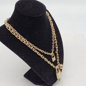 Authentic Louis Vuitton Lock & Key W/ Unbranded Stainless Steel Gold DoubleChain