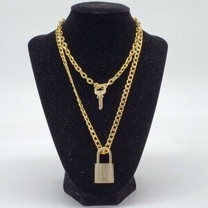 NOTE: The chain is a fashion gold plated, not Louis Vuitton original chain. The lock and key is original Louis Vuitton, which can be used for locking bags, decorative, key charm, bracelet, and necklaces.