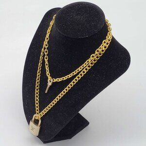 Authentic Louis Vuitton Lock & Key w/ 18k Gold Plated Chain Necklace