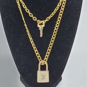 NOTE: The chain is a fashion gold plated, not Louis Vuitton original chain. The lock and key is original Louis Vuitton, which can be used for locking bags, decorative, key charm, bracelet, and necklaces.