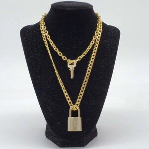 Authentic Louis Vuitton Lock & Key w/ 18k Gold Plated Chain Necklace