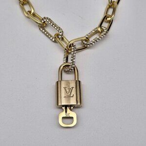 Authentic Louis Vuitton Lock & Key w/ Unbranded Gold Plated Gold Chain Necklace