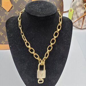 Authentic Louis Vuitton Lock & Key w/ Unbranded Gold Plated Gold Chain Necklace