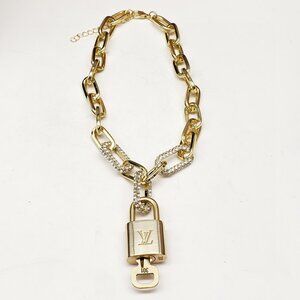 Authentic Louis Vuitton Lock & Key w/ Unbranded Gold Plated Gold Chain Necklace