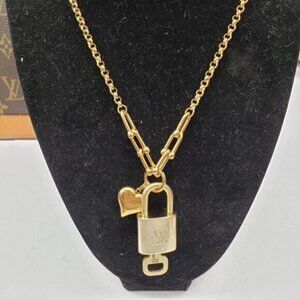 Authentic Louis Vuitton Lock & Key w/ Unbranded Horseshoe Stainless Steel Chain