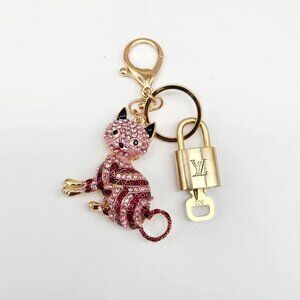 Authentic Louis Vuitton Lock & Key with Unbranded Cat Charm, Keychain 121525
