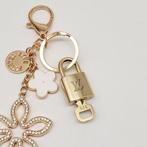 Authentic Louis Vuitton Lock & Key with Unbranded Flower Charm, Keychain 090925