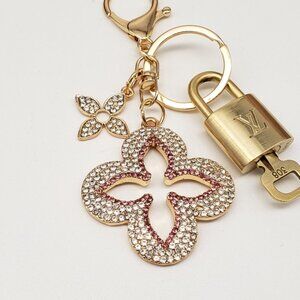 Authentic Louis Vuitton Lock & Key with Unbranded Pink Floral Clover Keychain