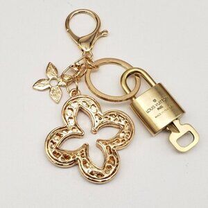 Authentic Louis Vuitton Lock & Key with Unbranded Pink Floral Clover Keychain