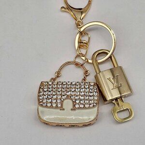 Elegant bag keychain featuring a stylish Louis Vuitton padlock charm. Perfect for adding a touch of luxury to your accessories.