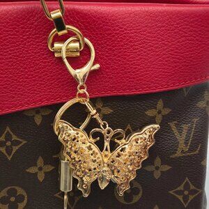 Elegant butterfly keychain featuring a stylish Louis Vuitton padlock charm. Perfect for adding a touch of luxury to your accessories.
