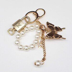 Authentic Louis Vuitton Lock & Key with unbranded Butterfly Pearl Bagcharm 10052