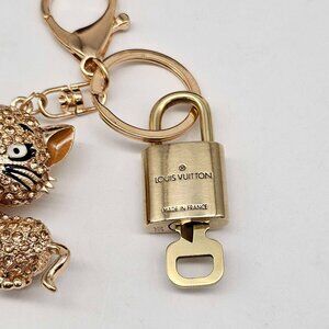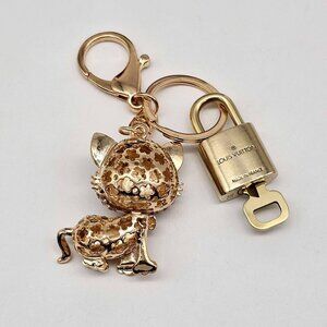Authentic Louis Vuitton Lock & Key with unbranded Cat Rhinestone Bagcharm 111525