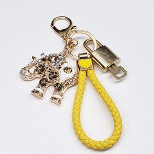 Elegant elephant keychain featuring a stylish Louis Vuitton padlock charm. Perfect for adding a touch of luxury to your accessories.