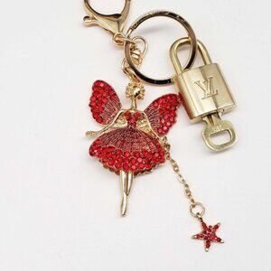 Elegant fairy keychain featuring a stylish Louis Vuitton padlock charm. Perfect for adding a touch of luxury to your accessories.