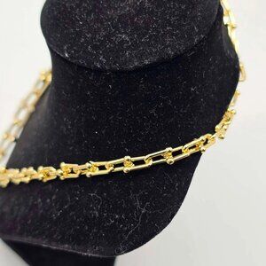 Luxurious and elegant gold/silver plated chain necklace featuring a louis vuitton padlock pendant. Perfect for adding a touch of luxury to any outfit daily.