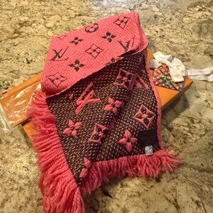 Authentic Louis Vuitton Logomania Scarf Pink Plume Monogram
