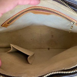 Very elegant 100% authentic LV preowned bag. Monogram brown leather with 1 zippered pocket and a cell phone pocket. This bag has a single rolled leather swiveling shoulder strap and zippered closure. Dimensions are approximated: 11" L x 4.5" W x 12" H with handle drop: 9.5" No rips or tears in leather but dose show signs of use. Please examine photos carefully and ask questions prior to buying. No longer available in stores. Will be authenticated prior to being shipped by poshmart.