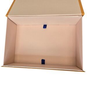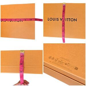 Authentic Louis Vuitton Luxury Orange Blue Empty Box 10.75" L x 7.25" W x 3.125" H & Bag. Color of box and bag is orange with navy blue font and hand straps. Open flap magnetic closure. This bundle includes the empty box and empty shopping bag. Please see measurements to see if your item fits. The box fits in the bag.