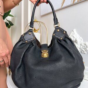 Authentic Louis Vuitton Mahina hobo L Leather monogram dark blue bag B0905