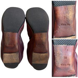 Authentic Louis Vuitton Maroon Leather Reptile Toe Bow Scrunch Ballet Flats 8